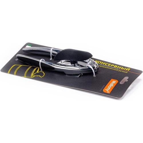 Нож консервный MODERNO тм Mallony Размер: 15,5*4,4*5,5 см Вес: 0,255 Материалы: сплав цинка хромированный, ABS пластик, soft-touch (прорезиненная ручка — TPR) Упаковка — цветная картонная подложка с подвесом Не рекомендуется мыть в посудомоечной машине.