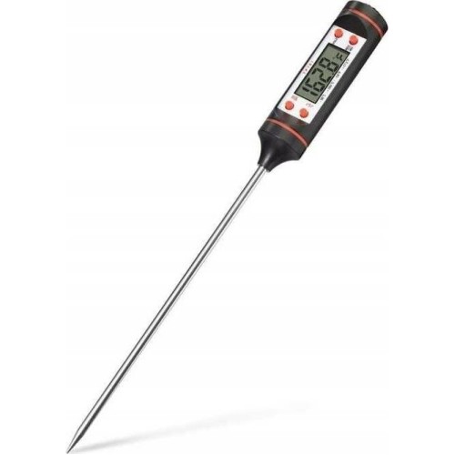 Измерение температура воды, масла, молока, чая, супа, йогурта, мяса т. д. Диапозон изм.: -50℃ - +300℃ (-58℉ - +572℉) Цена деления: 0.1℃/℉ Автоматическое отключение питания после 10 минут бездействия Отображние максимальной и минимальной темпаратуры Питание от батареи: 1,5 В LR44 (входит в комплект) Прозрачный бокс для хранения