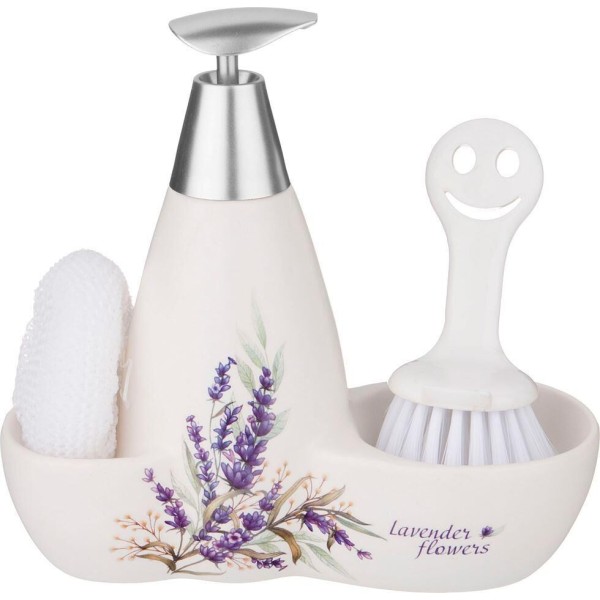 Набор кухонный LEFARD 755-221 ДУША ПРОВАНСА дозатор д/моющ.средства 500мл+губка и щетка 20*9*18см
