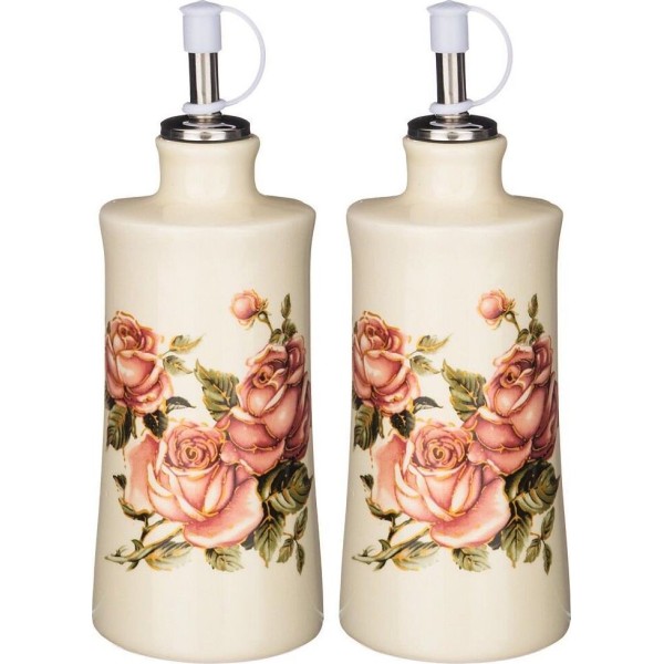 AGNESS НАБОР ДЛЯ МАСЛА/УКСУСА "КОРЕЙСКАЯ РОЗА" 2ПР. 6,5*6,5 СМ. ВЫСОТА=14,5 СМ. / 300 МЛ. (КОР=16НАБ.) 358-1704