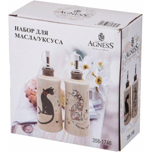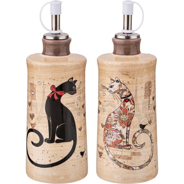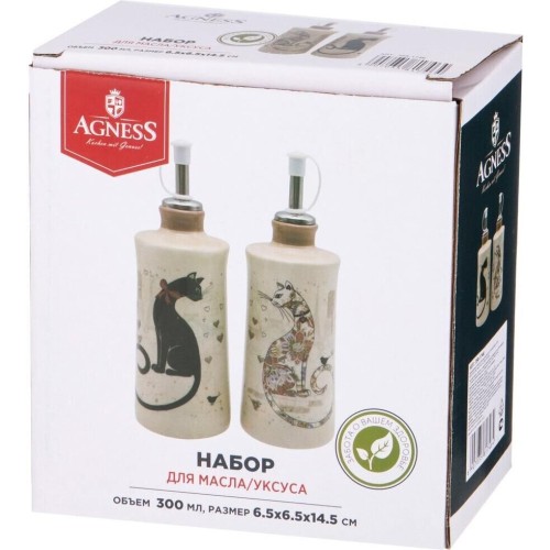 AGNESS НАБОР ДЛЯ МАСЛА/УКСУСА "ПАРИЖСКИЕ КОТЫ" 2ПР. 6,5*14,5 СМ 300 МЛ (КОР=16НАБ.) 358-1746