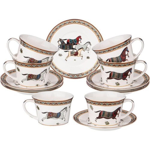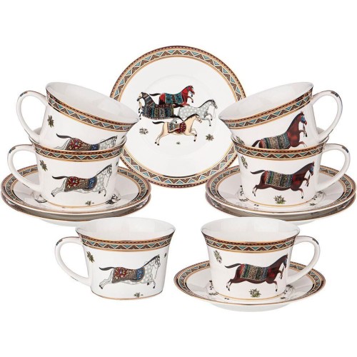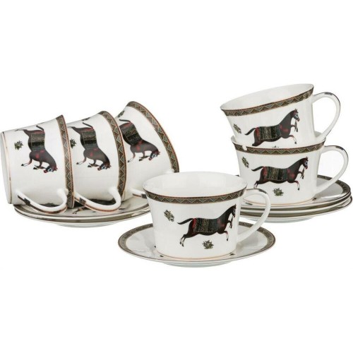 ТМ Lefard коллекция Passage мужественная и стильная. Движения лошадей эластичные, элегантные с активным импульсом. Каждая диагональная пара ног поднимается и ставится в очень точном ритме и с подвисанием. Шея лошади приподнята и округлена, затылок находится в высшей точке, голова опущена почти вертикально. Этот ритм завораживает. Посуда для сервировки стола из тонкостенного упрочненного фарфора неповторима. Прямые формы. Декор с богатым орнаментом и золотой окантовкой. Посуда прошла сертификацию. Безопасна для контакта с пищевыми продуктами. Отличный подарок. Не использовать в микроволновой печи, не рекомендуется мыть в посудомоечной машине.