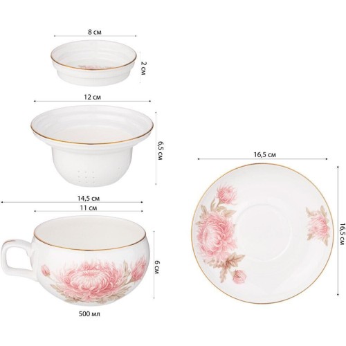 кружка 1шт, блюдце 1 шт, сито 1шт, крышка 1шт