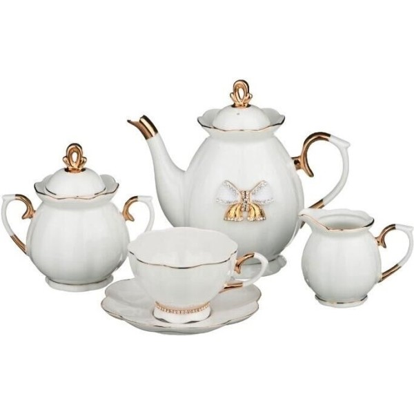 чайник с крышкой 1 шт- сахарница с крышкой - 1 шт- чашка - 6 шт - блюдце - 6 шт - молочник - 1шт