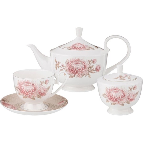Комплектность: чайник 1200 мл - 1 шт., сахарница 320 мл - 1 шт., чашка 250 мл - 6 шт., блюдце - 6шт.