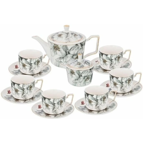 чайник 950 мл, сахарница 300 мл, 6 чашек 280 мл, 6 блюдец