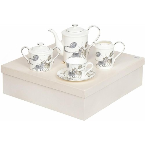 Комплектность: чайник 1000 мл 16 см, сахарница 400 мл 11 см, молочник 350 мл 10 см, 6 чашек 200 мл, 6 блюдец