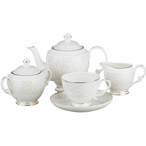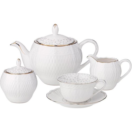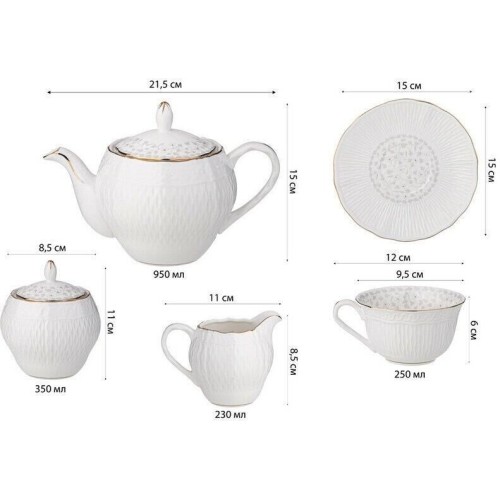270 мл - 6 шт., чашки, чайник, 850 мл - 1 шт., сахарница, 300 мл - 1 шт., молочник, 400 мл - 1 шт., блюдца - 6 шт.
