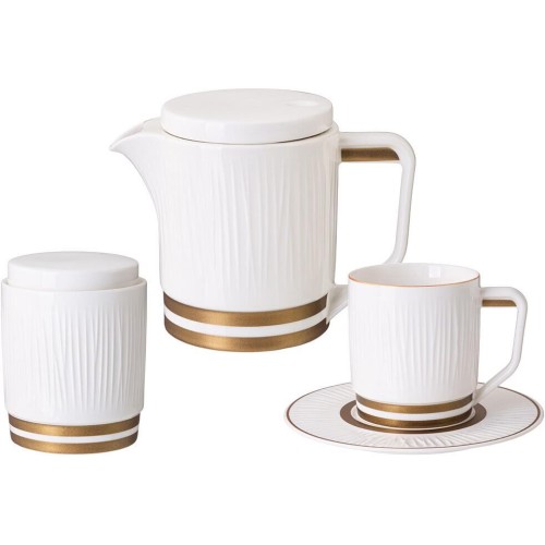 Комплектность: чайник 1000 мл - 1 шт., сахарница 320 мл - 1 шт, чашка 250 мл - 6 шт., блюдце - 6 шт.