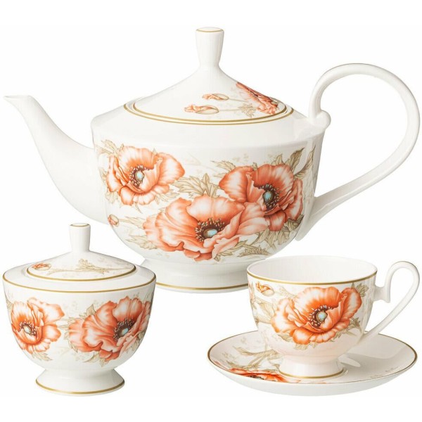 Комплектность: чайник 1000 мл - 1 шт., сахарница 300 мл - 1 шт., чашка 250 мл - 6 шт., блюдце - 6 шт., тарелка пирожковая - 6 шт.