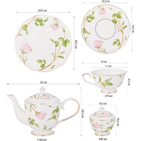 LEFARD ЧАЙНЫЙ СЕРВИЗ "ROSE VALLEY" НА 6 ПЕР. 20 ПР. 1100/300/270 МЛ/20,5 СМ (КОР=2НАБ.) 275-1254