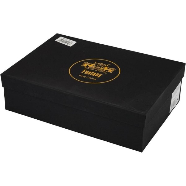 Коллекция "Fantasy" ТМ LEFARD - это модная сервировка стола и стильный кухонный интерьер в классическом черном с золотом цвете. Блюда и формы различных размеров, менажницы на бамбуковых подставках, банки, тарелки и салатники различного назначения, чайники, чайные пары и кружки выполнены из упрочненного фарфора. Четкие линии, сверкающее глянцевое покрытие. Вы и Ваш стол неотразим! Посуда прошла сертификацию. Безопасна для контакта с пищевыми продуктами. Можно использовать в микроволновой печи. Не рекомендуется мыть в посудомоечной машине.