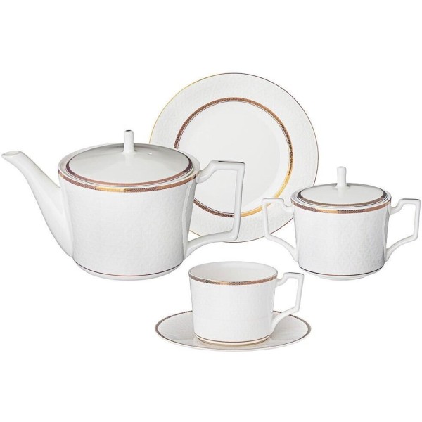 Комплектность: чайник 1000 мл - 1 шт., сахарница 300 мл - 1 шт., чашка 250 мл - 6 шт., блюдце - 6 шт., тарелка пирожковая - 6 шт.