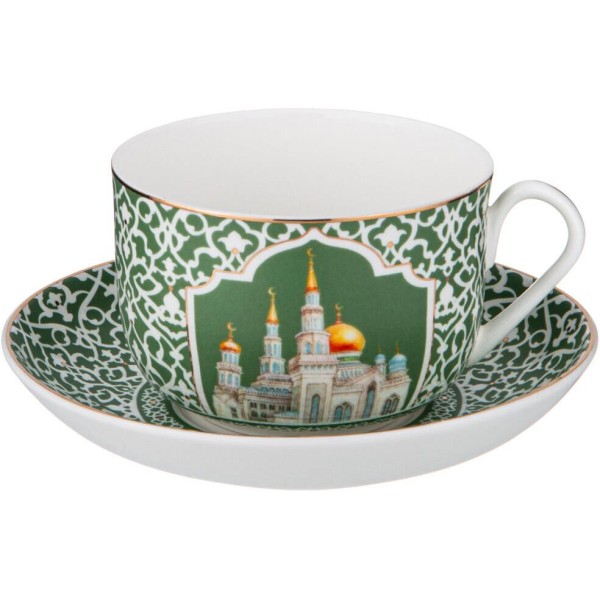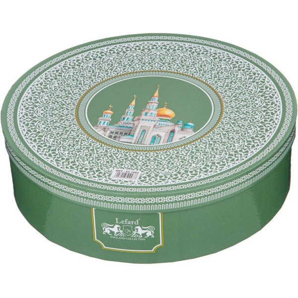 ТМ LEFARD представляет эксклюзивную коллекцию посуды «МЕЧЕТЬ». Кружки, чайные пары, наборы чайных пар, декоративные тарелки выполнены из высококачественного тонкостенного фарфора. При участии служителей Московской соборной мечети, одной из самых крупных в Европе, создана эта великолепная и торжественная коллекция. Восточный орнамент, изображение мечети, транскрипция Сур из Корана на кириллице, история Московской соборной мечети в нескольких любимых мусульманами цветах с отделкой золотом украшают изделия. Каждое изделие упаковано в цветную или подарочную коробки. Это прекрасный мусульманский подарок, всегда нужный и теплый. Относитесь к нему бережно и с почтением. Посуду коллекции можно использовать как в повседневной жизни, так и на торжественном приеме. Не рекомендуется мыть в посудомоечной машине и использовать в микроволновой печи.