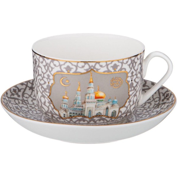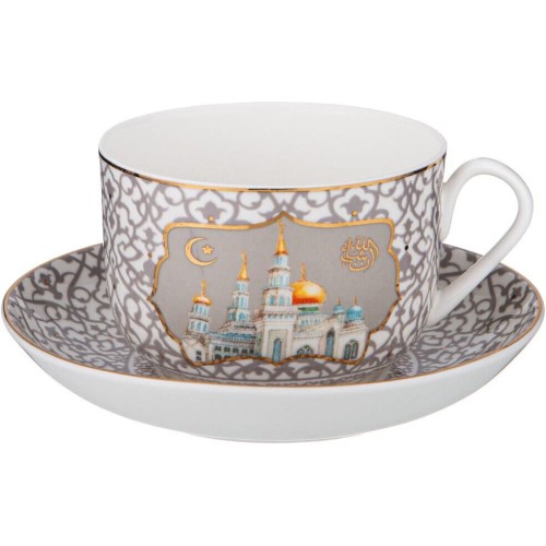 ТМ LEFARD представляет эксклюзивную коллекцию посуды «МЕЧЕТЬ». Кружки, чайные пары, наборы чайных пар, декоративные тарелки выполнены из высококачественного тонкостенного фарфора. При участии служителей Московской соборной мечети, одной из самых крупных в Европе, создана эта великолепная и торжественная коллекция. Восточный орнамент, изображение мечети, транскрипция Сур из Корана на кириллице, история Московской соборной мечети в нескольких любимых мусульманами цветах с отделкой золотом украшают изделия. Каждое изделие упаковано в цветную или подарочную коробки. Это прекрасный мусульманский подарок, всегда нужный и теплый. Относитесь к нему бережно и с почтением. Посуду коллекции можно использовать как в повседневной жизни, так и на торжественном приеме. Не рекомендуется мыть в посудомоечной машине и использовать в микроволновой печи.