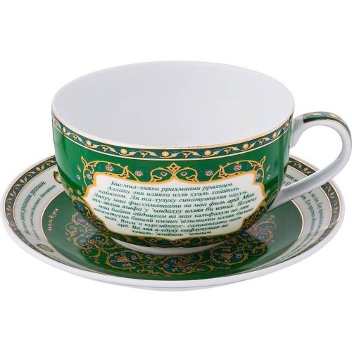 ТМ LEFARD представляет эксклюзивную коллекцию посуды «Суры из Корана». Кувшины, чайники, сахарницы, кружки, чайные пары, декоративные тарелки и другие предметы выполнены из высококачественного тонкостенного фарфора. Восточный орнамент, небольшие отрывки Сур из Корана на классическом арабском и русском языках с отделкой золотом украшают изделия. Это прекрасный мусульманский подарок, всегда нужный и теплый. Относитесь к нему бережно и с почтением. Посуду коллекции можно использовать как в повседневной жизни, так и на торжественном приеме. Не рекомендуется мыть в посудомоечной машине и использовать в микроволновой печи.
