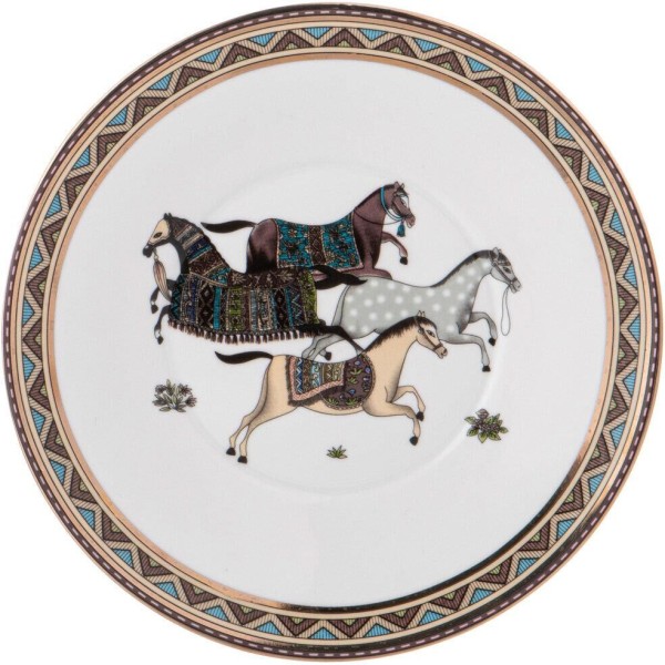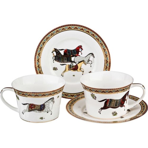 ТМ Lefard коллекция Passage мужественная и стильная. Движения лошадей эластичные, элегантные с активным импульсом. Каждая диагональная пара ног поднимается и ставится в очень точном ритме и с подвисанием. Шея лошади приподнята и округлена, затылок находится в высшей точке, голова опущена почти вертикально. Этот ритм завораживает. Посуда для сервировки стола из тонкостенного упрочненного фарфора неповторима. Прямые формы. Декор с богатым орнаментом и золотой окантовкой. Посуда прошла сертификацию. Безопасна для контакта с пищевыми продуктами. Отличный подарок. Не использовать в микроволновой печи, не рекомендуется мыть в посудомоечной машине.