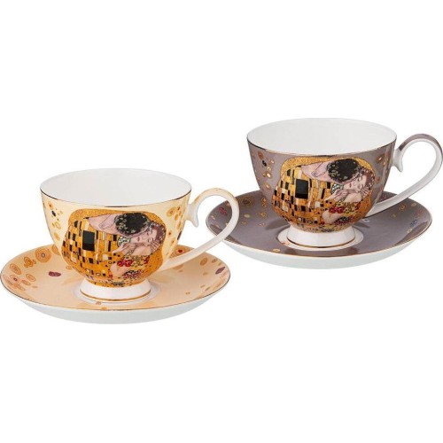 LEFARD ЧАЙНЫЙ НАБОР "ПОЦЕЛУЙ" (Г. КЛИМТ) НА 2ПЕР.4ПР.250 МЛ, КРЕМОВЫЙ, СЕРЫЙ (КОР=12НАБ.) 104-665