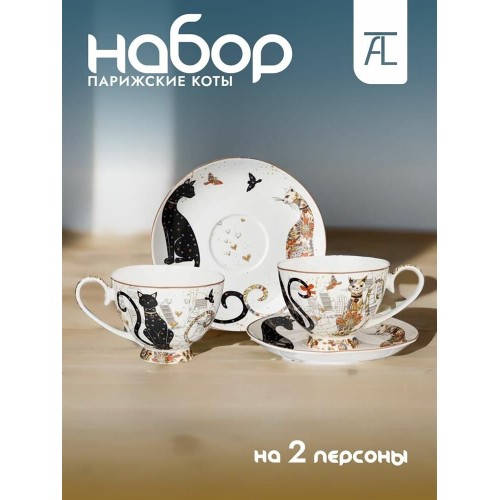 LEFARD ЧАЙНЫЙ НАБОР "ПАРИЖСКИЕ КОТЫ" НА 2 ПЕР. 4 ПР. 250 МЛ (КОР=18НАБ.) 104-831
