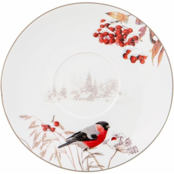 Фото снегирей очень часто украшают различные новогодние открытки, календари, журналы. Дизайнеры ТМ LEFARD разместили этих ярких птиц на белоснежном тонкостенном фарфоре.