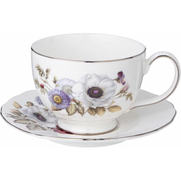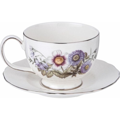 ТМ LEFARD коллекция "BOUQUET" с ботаническим рельефным рисунком, цветочным декором и изящной платиновой полосой. Так и хочется пробежаться по роскошному лугу, упасть в траву и замереть, слиться с этим миром и услышать стрёкот кузнечиков, гул шмелей, шелест лёгких крыльев стрекоз и бабочек. Упрочненный высококачественный тонкий фарфор. Современные эксклюзивные формы, украшенные рельефными линиями и уникальным декором, удобные размеры. Обеденные и закусочные тарелки, суповая тарелка - салатник, овальные блюда и салатники различного назначения - все это делает сервировку ежедневного и праздничного стола изящной и неповторимой. Декорированный рельефный фарфор прекрасно сочетается с белой рельефной частью коллекции. Это прекрасный подарок. Посуда прошла сертификацию. Безопасна для контакта с пищевыми продуктами. Мыть с применением мягких моющих средств. Нельзя использовать в микроволновой печи, не рекомендуется мыть в посудомоечной машине. Комплектность: 2 чашки 280 мл, 2 блюдца