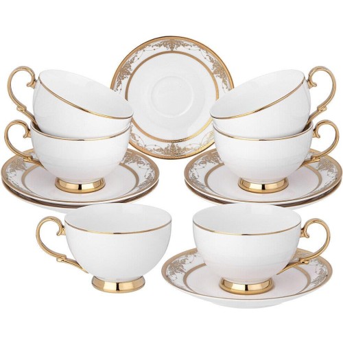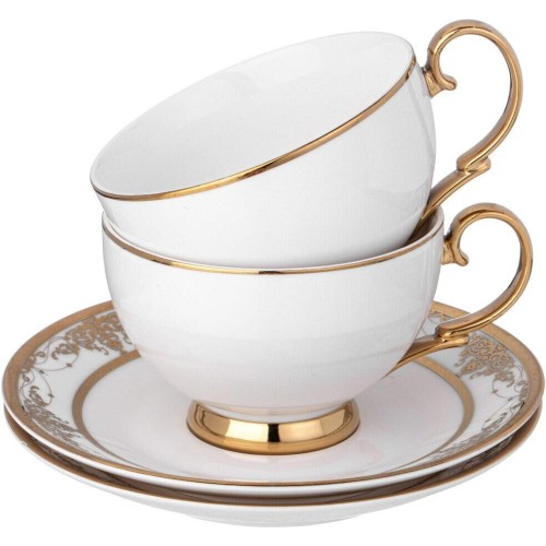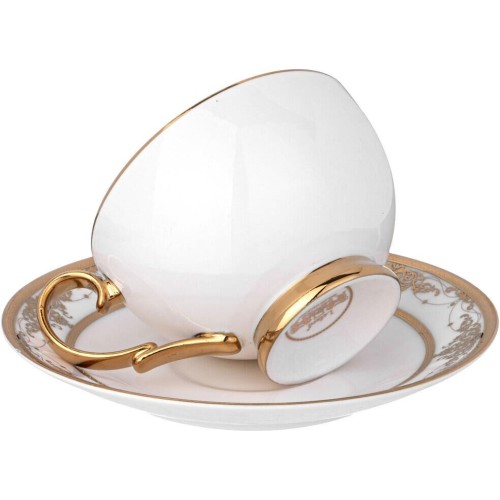 ТМ LEFARD Чайный набор "Дворец" для торжественых застолий и семейных обедов. Изысканный фарфор Bone Pocelain с эффектом костяного фафора, тонкий и полупрозрачный, прочный и никогда не темнеет. Утонченный кружевной рельефный орнамент выглядит объемным и привлекательным благодаря различной обработке выпуклых и базовых поверхностей. Изящная золотая обводка придает блеск и торжественность. Эта посуда замечательный подарок на свадьбу, юбилей, день рождения, который наверняка пригодится каждой семье, запомнится навсегда и прослужит долгие годы. Дизайнеры торговой марки предлагают чайный и обеденный сервизы и наборы тарелок и чайных пар, чтобы сформировать полную сервировку стола предметами коллекции на 6 или 12 персон.