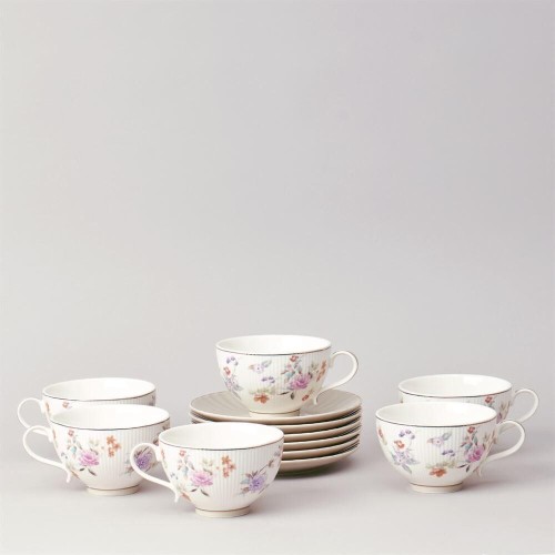 ТМ LEFARD коллекция "Времена года" выполнена из тонкостенного фарфора. Стильная форма, вместительный объем, модное сочетание пастельных тонов и цветочной деколи, отделка золотом - все это делает коллекцию неотразимой и очень привлекательной. Форма и цвет посуды способны оказать магическое действие на всех, кто находится за столом. «Времена года» могут согреть душу, создать тепло и уют в доме. Это прекрасный подарок. Продукция прошла сертификацию и безопасна для контакта с пищевыми продуктами. Можно ставить в микроволновую печь, не рекомендуется мыть в посудомоечной машине. Комплектность: 6 чашек 250 мл., 6 блюдец 15*7 см.