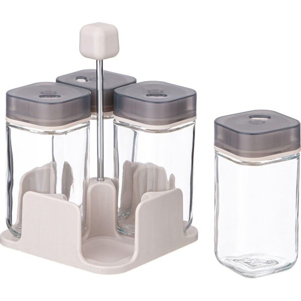AGNESS НАБОР ЕМКОСТЕЙ ДЛЯ СПЕЦИЙ 4ШТ 100МЛ НА ПОДСТАВКЕ 671-106