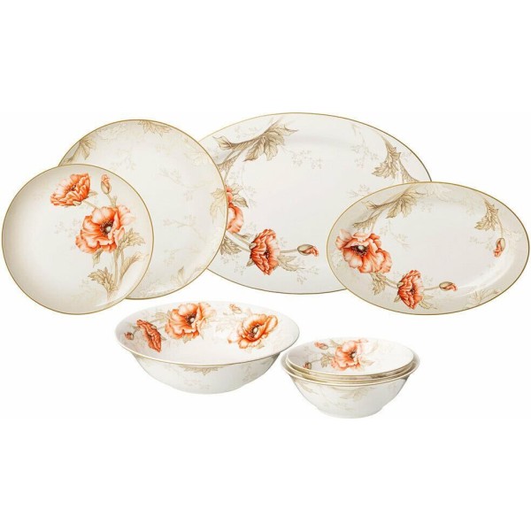 Посуда прошла сертификацию, безопасна для контакта с пищевыми продуктами. Можно ставить в микроволновую печь, мыть в посудомоечной машине. Комплектность: тарелка обеденная 25,5см - 6 шт., тарелка закусочная 20,5см - 6 шт., салатник-тарелка суповая 18см 750 мл - 6 шт., блюдо овальное 35см - 1 шт., блюдо овальное 25,5см - 1 шт, салатник 23см 1250 мл - 1 шт., салатник 15см 500 мл - 2 шт.