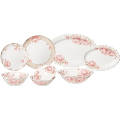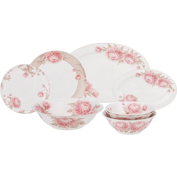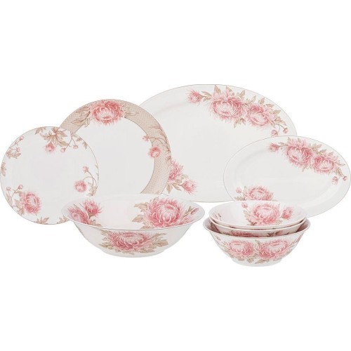 Комплектность: тарелка обеденная 25,5см - 6 шт., тарелка закусочная 20,5см - 6 шт., салатник-тарелка суповая 18см 750 мл - 6 шт., блюдо овальное 35см - 1 шт., блюдо овальное 25,5см - 1 шт, салатник 23см 1250 мл - 1 шт., салатник 15см 500 мл - 2 шт.