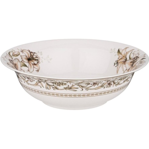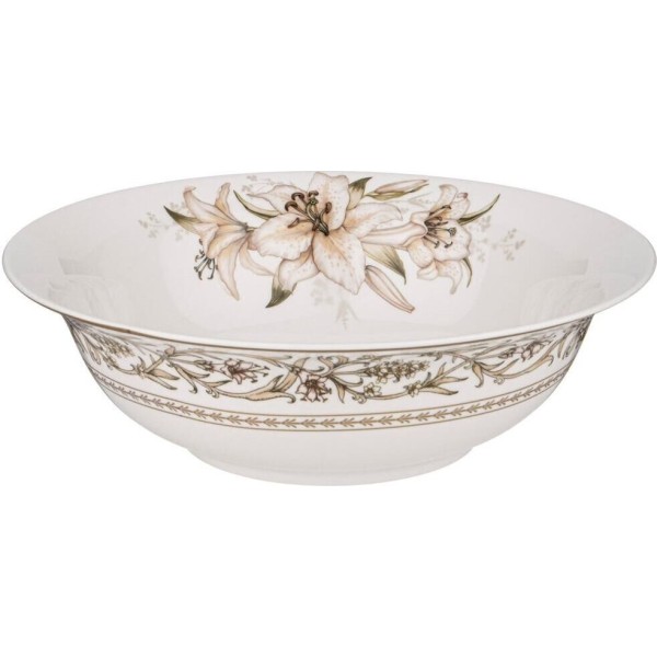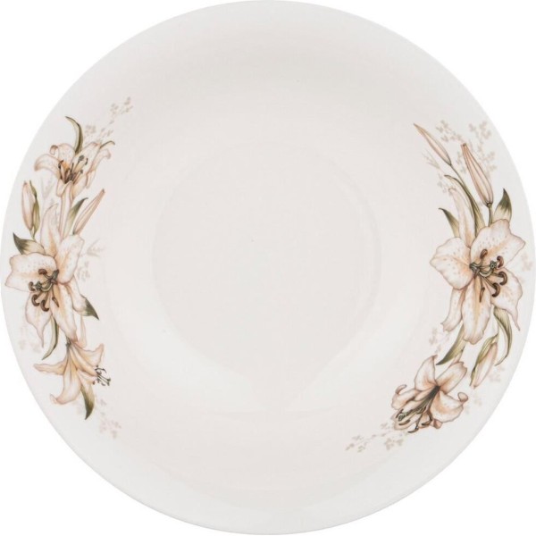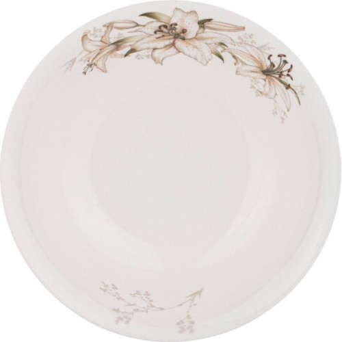 TM Lefard коллекция "Лилии" - эксклюзивная коллекция белых лилий на современных формах. Этот цветок известен с 1700 года до нашей эры и от древнегальского "ли - ли" означает "белый - белый". Согласно греческому мифу, лилия появилась из капель молока богини Геры и является символом чистоты и женственности, королевой всех цветов. Качественный тонкостенный фарфор, "живые" натуральные цвета декора, красочная упаковка делают предметы коллекции прекрасным подарком к любому случаю. Продукция сертифицирована, безопасна для контакта с пищевыми продуктами. Разрешено ставить в микроволновую печь, мыть в посудомоечной машине. Комплектность: тарелка обеденная 25,5 см 6 шт., тарелка закусочная 20,5 см 6 шт, тарелка-салатник суповая 18*5 см 700 мл 6 шт, блюдо овальное 32*22 см 2 шт., салатник 23*7 см 1400 мл 1 шт., салатник 15,5*5 см 400 мл 2 шт.