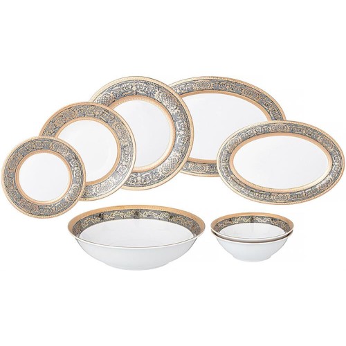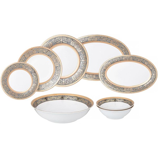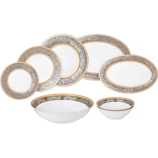 Комплектность: блюдо овальное 36*24,5 см - 1 шт., блюдо овальное 31*21 см - 1 шт., тарелка обеденная 27 см - 6 шт., тарелка закусочная 20,5 см - 6 шт., тарелка супова 24*4 см - 6 шт., салатник 23*6 см - 1 шт., салатник 14*4,5 см - 2 шт.