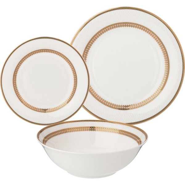 ТМ LEFARD набор посуды столовой "Праздничный" для торжественых застолий и семейных обедов. Изысканный фарфор Bone Pocelain с эффектом костяного фафора, тонкий и полупрозрачный, прочный и никогда не темнеет. Классический рельефный орнамент в виде сетки выглядит объемным и привлекательным. Пересекающиеся линии уходят в бесконечность. Состояние движения подталкивает к движению вперед, наполняя энергией. Изящный золотой кант придает блеск и торжественность. Эта посуда замечательный подарок на юбилей, день рождения, новоселье, который наверняка пригодится каждой семье, запомнится навсегда и прослужит долгие годы. Дизайнеры торговой марки предлагают чайный и обеденный сервизы и наборы чайных пар, чтобы сформировать полную сервировку стола предметами коллекции на 6 или 12 персон.