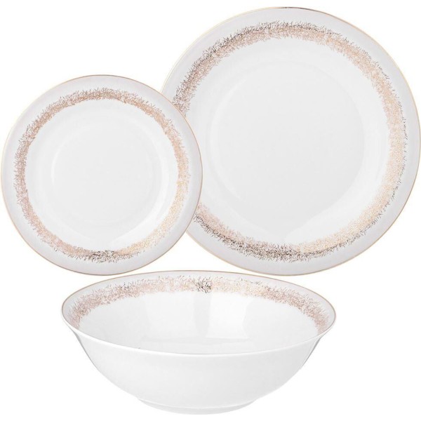 ТМ LEFARD Набор посуды столовой "Золотой песок" для торжественых застолий и семейных обедов. Изысканный фарфор Bone Pocelain с эффектом костяного фафора, тонкий и полупрозрачный, прочный и никогда не темнеет. Утонченный кружевной рельефный орнамент выглядит объемным и привлекательным благодаря различной обработке выпуклых и базовых поверхностей. Изящная золотая обводка придает блеск и торжественность. Эта посуда замечательный подарок к любому торжеству, она наверняка пригодится каждой семье, запомнится навсегда и прослужит долгие годы. Дизайнеры торговой марки предлагают чайный и обеденный сервизы и наборы чайных пар, чтобы сформировать полную сервировку стола предметами коллекции на 6 или 12 персон.