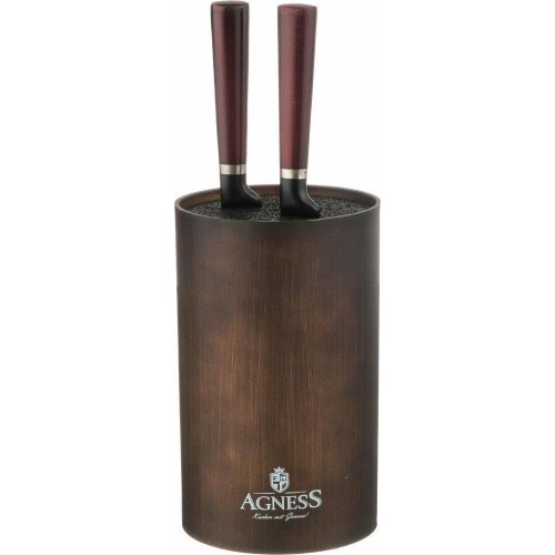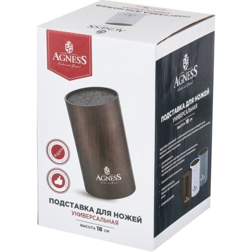 ПОДСТАВКА ДЛЯ НОЖЕЙ AGNESS УНИВЕРСАЛЬНАЯ,11*18СМ Высота, см: 18 Диаметр, см: 11 Материал: Пластик Долговечность. Подставка выполненна из высококачественного пластика и прочного полимера - графито-каучука, который помогает сохранить остроту кромки ножа. Практичность. Внутренняя часть съемная, при необходимости ее можно промыть и просушить. Универсальность. Подходит для ножей различной длины. Стильный дизайн.