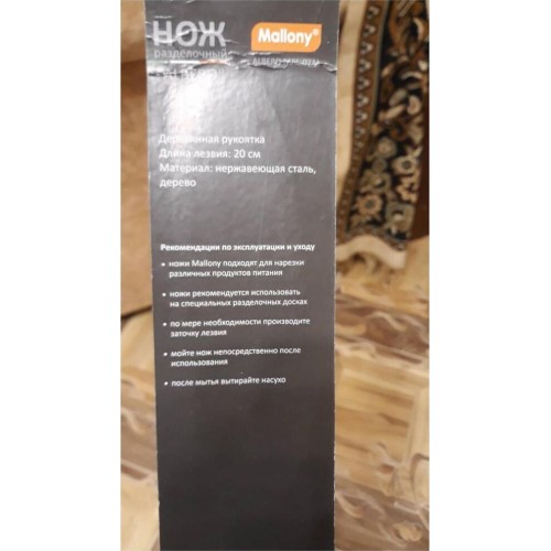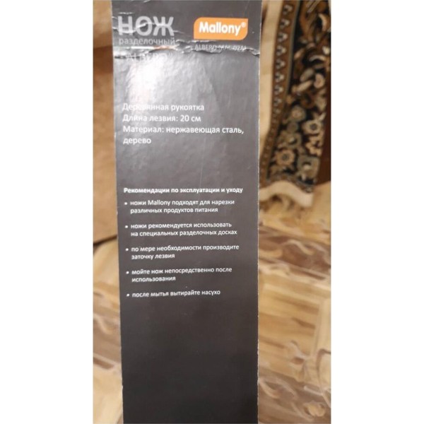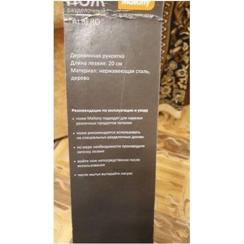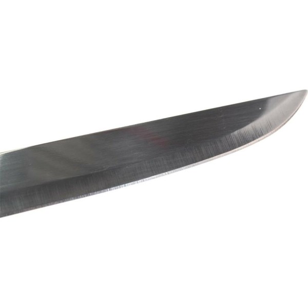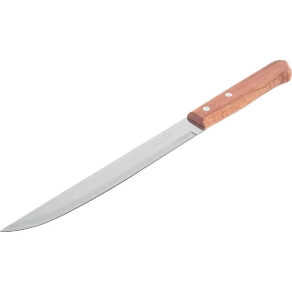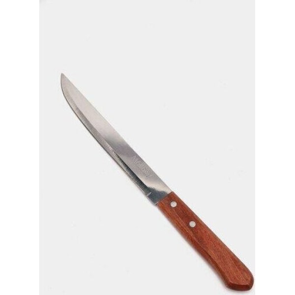 Длина лезвия: 20 см Толщина лезвия: 1,2 мм Длина рукоятки: 13 см Материал: нержавеющая сталь (3CR13 SS), дерево Упаковка: блистер