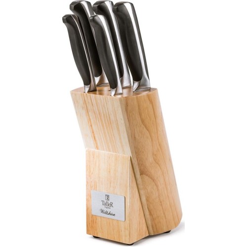 Набор ножей "Уилтшир", 6 пр. Подставка выполнена из каучукового дерева, лезвия ножей сделаны из коррозионностойкой стали 420S45. Состав набора: нож поварской 20,0 см — 1шт., нож для хлеба 20,0 см — 1 шт., нож для нарезки 20,0 см — 1 шт., нож универсальны