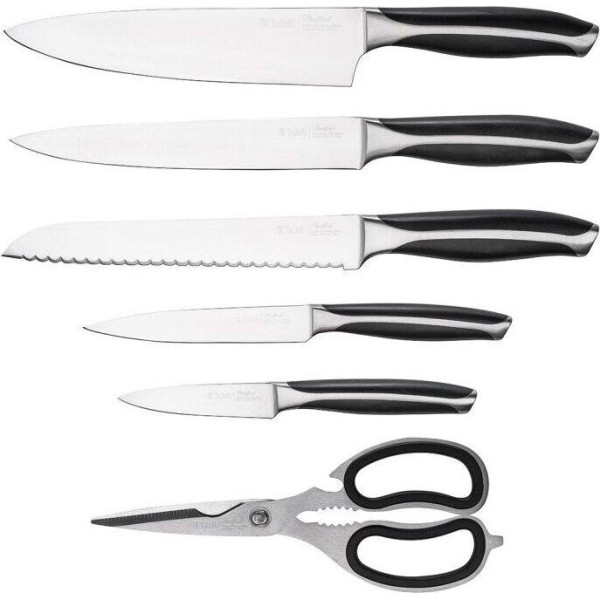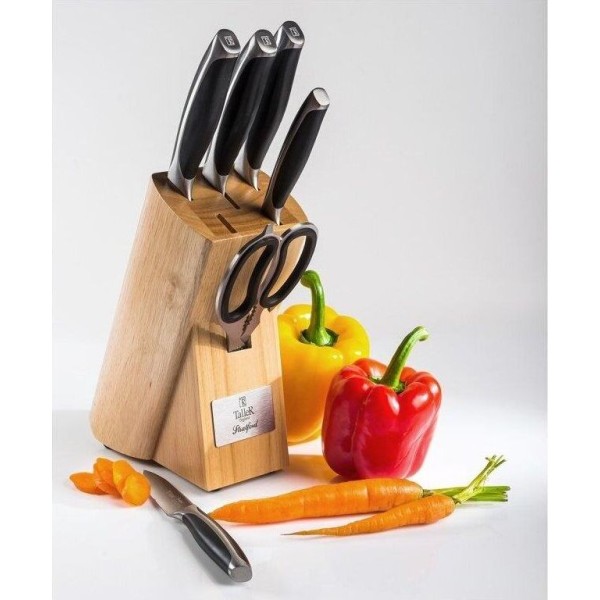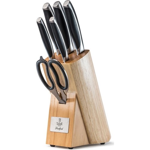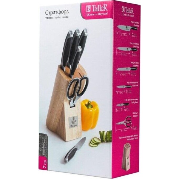 Набор ножей "Стратфорд", 7 пр. Подставка выполнена из каучукового дерева, лезвия ножей сделаны из коррозионностойкой стали 420S45. Состав набора: нож поварской 20,0 см — 1шт., нож для хлеба 20,0 см — 1 шт., нож для нарезки 20,0 см — 1 шт., нож универсаль