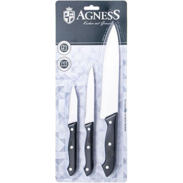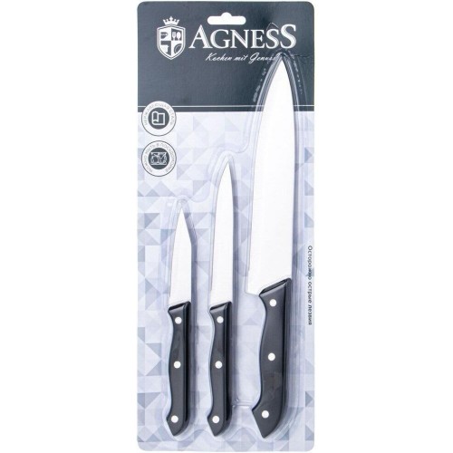 AGNESS НАБОР КУХОННЫХ НОЖЕЙ ИЗ 3 ШТ.: ШЕФ 32СМ, УНИВЕРСАЛЬНЫЙ 24СМ, ДЛЯ ОВОЩЕЙ 20СМ(МАЛ=12НАБ./КОР=24НАБ.) 712-0007