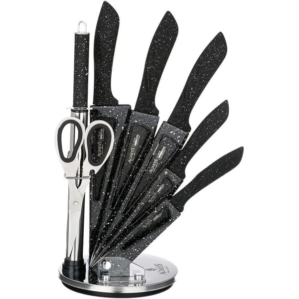 AGNESS НАБОР НОЖЕЙ С НОЖНИЦАМИ И МУСАТОМ НА ПЛАСТИКОВОЙ ПОДСТАВКЕ, 8 ПРЕДМЕТОВ 911-622