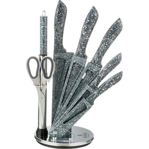 AGNESS НАБОР НОЖЕЙ "МОНБЛАН" С НОЖНИЦАМИ И МУСАТОМ НА ПЛАСТИКОВОЙ ПОДСТАВКЕ, 8 ПРЕДМЕТОВ 911-673