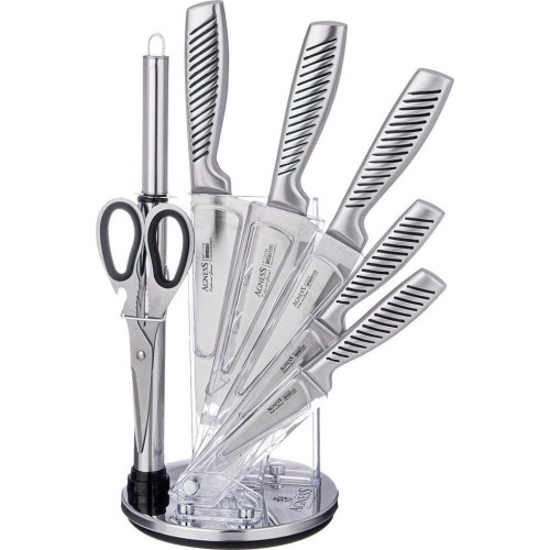 AGNESS НАБОР НОЖЕЙ НЖС НА ПЛАСТИКОВОЙ ВРАЩАЮЩЕЙСЯ ПОДСТАВКЕ 8 ПР. 911-762