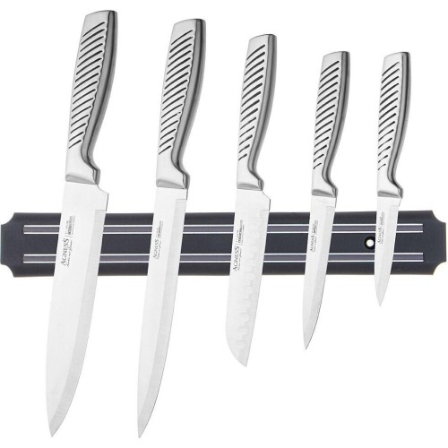 AGNESS НАБОР НОЖЕЙ 6 ПР.С МАГНИТНЫМ ДЕРЖАТЕЛЕМ И РУЧКОЙ ИЗ НЕРЖ.СТАЛИ 911-766