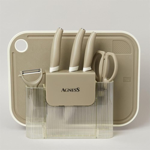 Нож - главный инструмент на кухне, а вернее ножи, т.к. даже самый лучший нож не сможет справиться со всем многообразием задач. Выбирая набор кухонных предметов AGNESS - Вы приобретаете комплект самых необходимых и чаще всего используемых ножей, ножницы разделочную доску и тёрку.