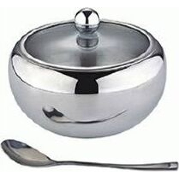 Сахарница с ложкой 600 мл, высококачественная нержавеющая сталь, подарочная упаковка.