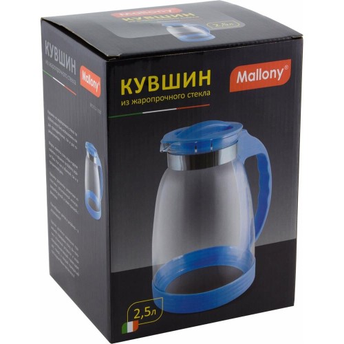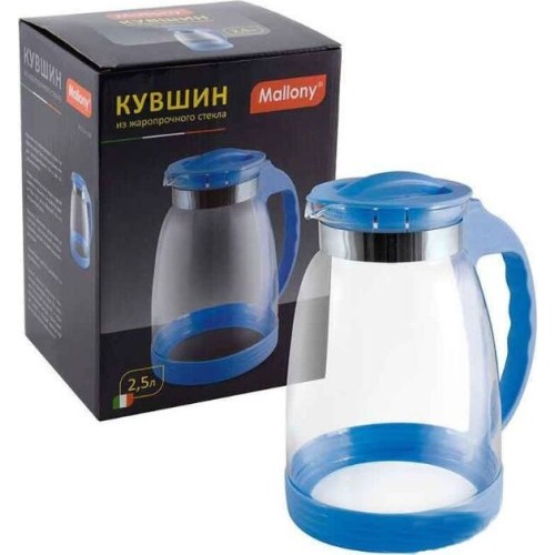 Кувшин MALLONY Кувшин BROCCA-2500, объем: 2,5 л, из жаропрочного стекла, с пластик ручкой, синий дизайн (910116)