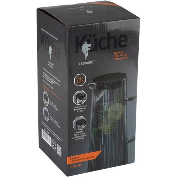 Кувшин LEONORD Кувшин AROMA 1,2 л из цветного боросиликатного рельефного стекла с крышкой-фильтром из полипропилена (106482)