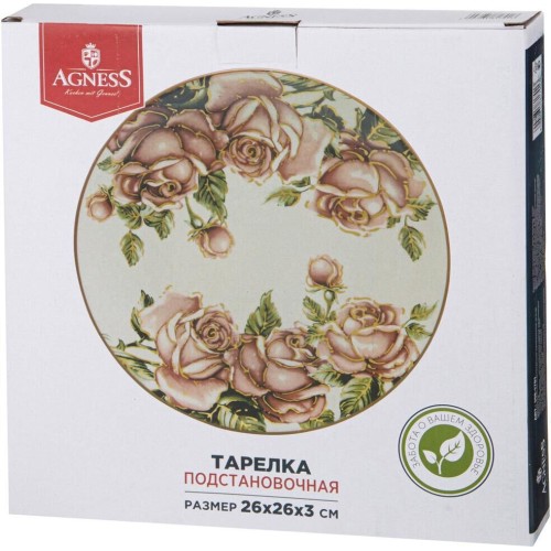 AGNESS ТАРЕЛКА ПОДСТАНОВОЧНАЯ "КОРЕЙСКАЯ РОЗА" 26*26 СМ. ВЫСОТА=3 СМ. (КОР=16ШТ.) 358-1701