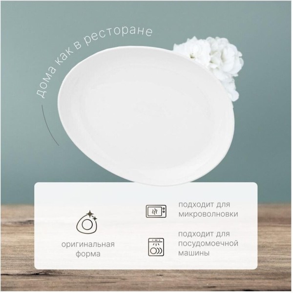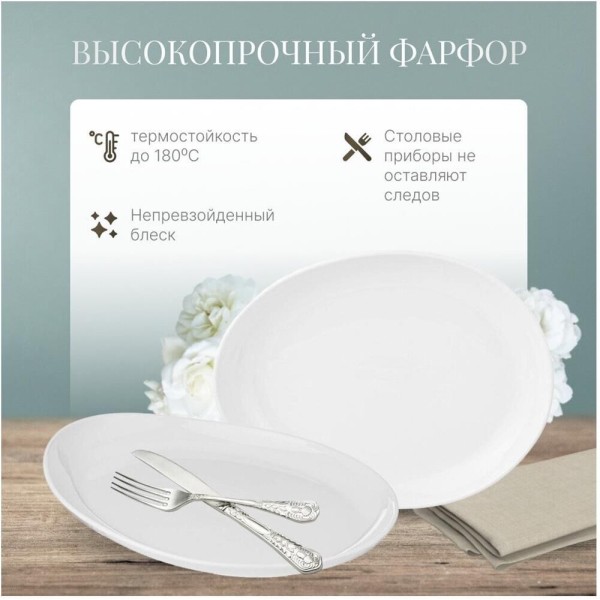 Тарелка обеденная овальная LEFARD EMOTION 25,7 х 20 х 3.7 см. ТМ Lefard представляет коллекцию посуды из белого фарфора. Благородный белый цвет и уникальный дизайн посуды удовлетворят самые изысканные потребности для идеальной сервировки стола. Коллекция универсальна, и станет оптимальным выбором для домашнего использования. Посуда обладает такими преимуществами как: Высокая прочность, термостойкость до 180 C, непревзойденный блеск, можно мыть в посудомоечной машине, и использовать в микроволновой печи.