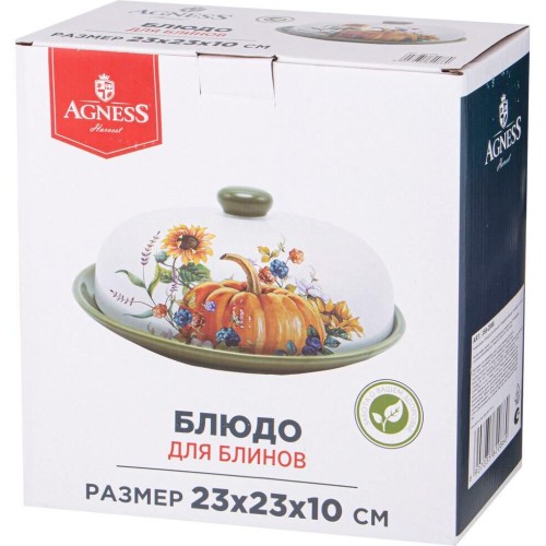 AGNESS БЛЮДО ДЛЯ БЛИНОВ С КРЫШКОЙ "УРОЖАЙ" 23*10 СМ (КОР=12ШТ.) 358-2086
